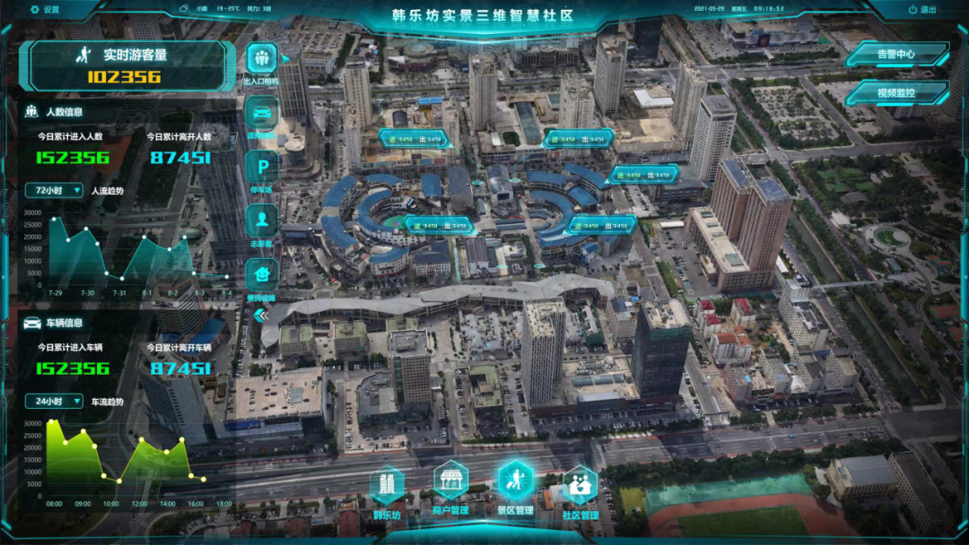 “韓樂坊數字孿生智慧社區”案例由威海市經開區應急管理局和威海市自然資源和規劃局聯合建設,是信息化提升改造建設的重要環節之一。智慧社區建設在實景三維單體化精細建模基礎上,成功接入城鎮燃氣、用電、監控等城市安全智能物聯網動態數據,與傳統商圈管理深度融合,構建形成了多維、動態、實時的面向社區綜合管理的數字孿生空間,實現了地理空間信息資源在韓樂坊社區可視化運行管理、實時化動態監測和精準化旅游服務等方面的數據共享應用價值,提升了韓樂坊社區的智慧服務水平,全面實現實景三維虛擬場景賦能真實社區管理,為社區的穩健發展牢筑數據基礎。